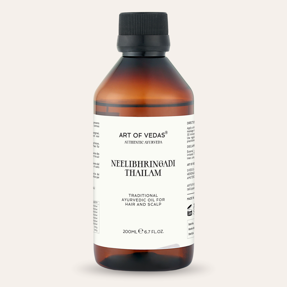 Valmistettu puhtaan kookosöljyn pohjalla käyttäen klassista Sneha Paka Vidhi -menetelmää, Neelibhringadi Thailam tunkeutuu syvälle päänahkaan rauhoittaakseen tulehdusta, poistaakseen kertymiä ja vahvistaakseen hiuksia juurista lähtien. Sitä käytetään perinteisesti Shiro Abhyangassa (päähieronta) edistämään mielen selkeyttä, levollista unta ja hiusten luonnollista kiiltoa.